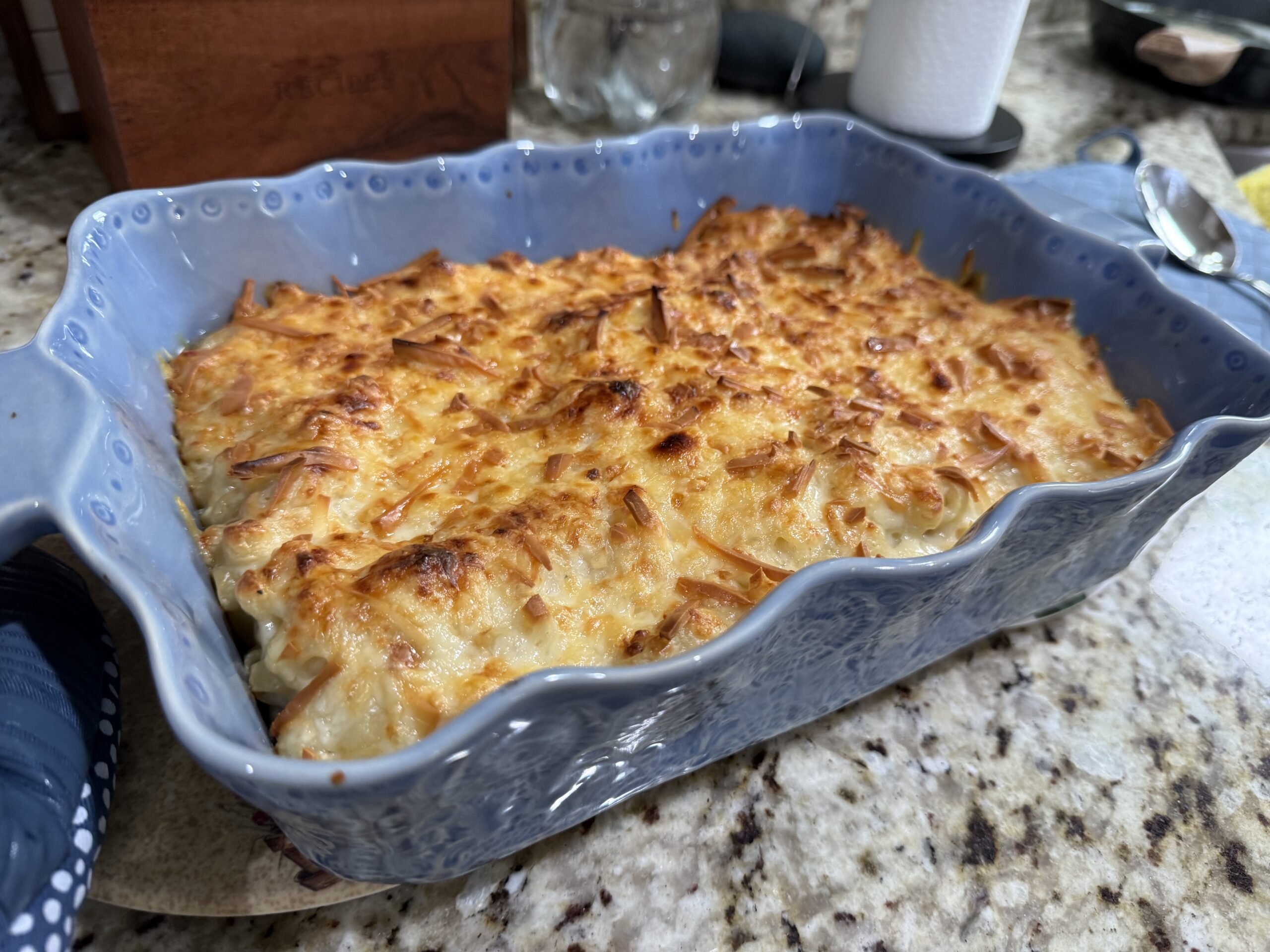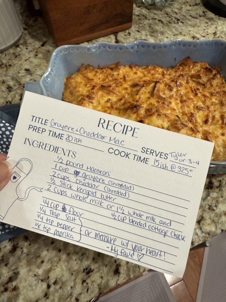There’s something about a creamy, baked mac and cheese that just feels like a hug in casserole form. This isn’t your basic mac. It’s cheesy, rich, and layered with flavor — thanks to the ultimate combo of Gruyère and sharp cheddar. Bonus: there’s cottage cheese in there (trust me, it works) and a little tip of love from my kitchen to yours.