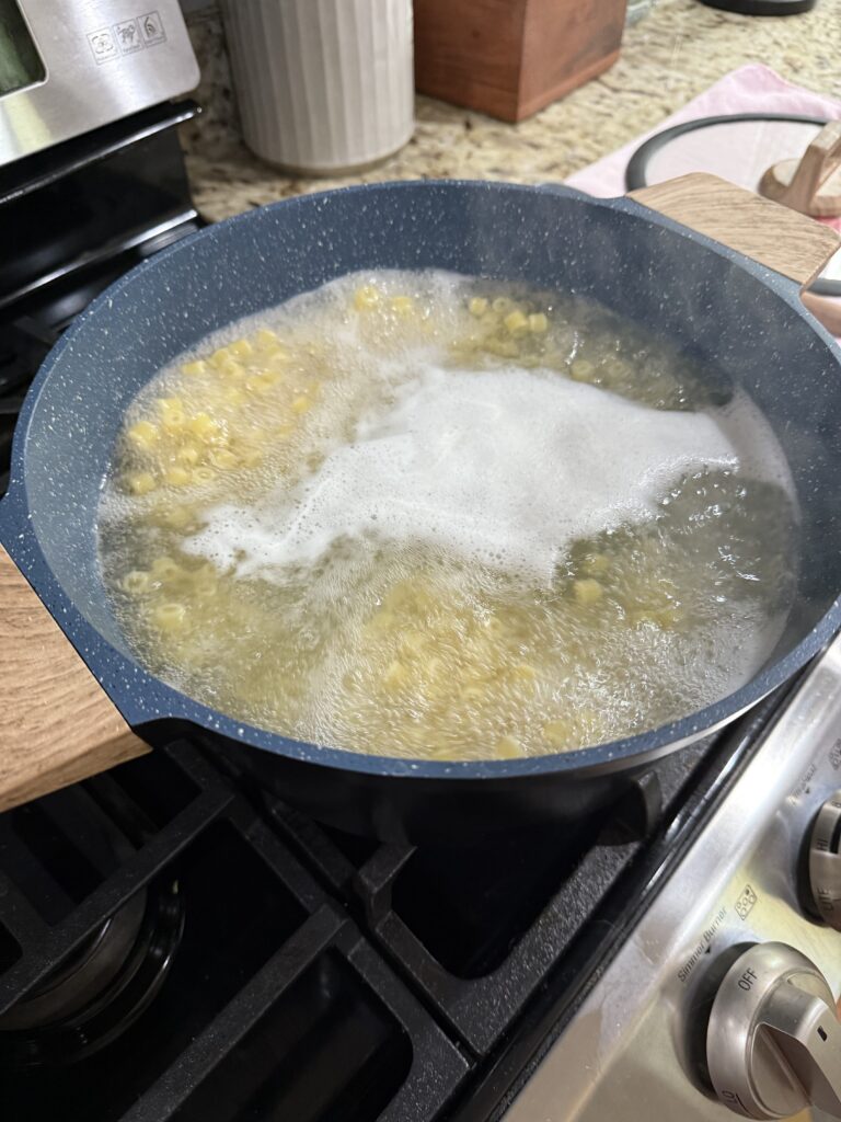 - Boil your pasta until about 1 minute less than the box instructions.