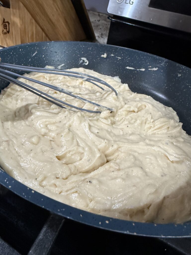 - Once warm and smooth, whisk in the 1½ cups of cheese a little at a time until fully melted. Then, stir in the cottage cheese until the sauce is silky and luscious.
