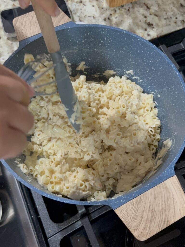 - Drain your pasta, and mix it with the cheese sauce.
